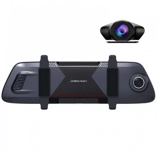 Видеорегистратор Aspiring MAXI 5 WiFi 4K Speedcam — умное зеркало для вашего авто Aspiring MAXI 5 – это современный автомобильный видеорегистратор в форм-факторе зеркала заднего вида с большим 9.66-дюймовым IPS-дисплеем Fullscreen. Устройство сочетает удобство, высокое качество съемки, поддержку Wi-Fi, GPS, базу Speedcam и два канала видео в формате 4K + FullHD.